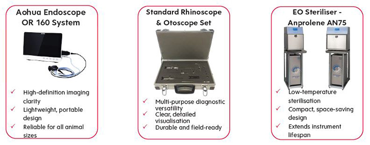 From the versatile Standard Veterinary Rhinoscope & Otoscope Set for ENT, rhinoscopy, otoscopy, and cystoscopy procedures, to the advanced Aohua Endoscope System for detailed internal imaging, and the trusted EO Steriliser – Anprolene AN75 Series for safe and effective instrument sterilisation — these tools empower smarter workflows, faster diagnostics, and superior patient outcomes.